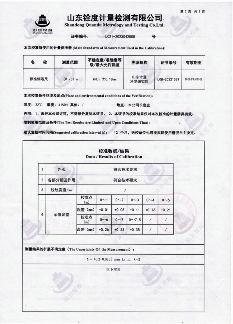 检测仪器报告证书:钢卷尺长度坚定报告