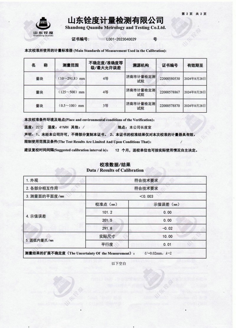 检测仪器报告证书:钢卷尺长度坚定报告