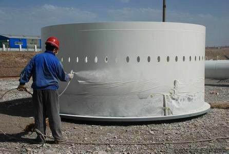 喷涂聚脲:是由异氰酸酯组份(简称A组份)与氨基化合物组份(简称R组份)反应生成的一种弹性体物质。异氰酸酯既可以是芳香族的,也可以是脂肪族的。其中的A组份可以是单体、聚合体、异氰酸酯的衍生物、预聚物和半预聚物。预聚物和半预聚物是由端氨基或者端羟基化合物与异氰酸酯反应制得。其中的R组份是由端氨基树脂和端氨基扩链剂组成,在端氨基树脂中,不得含有任何羟基成分和催化剂,但可以含有便于颜料分散的助剂。